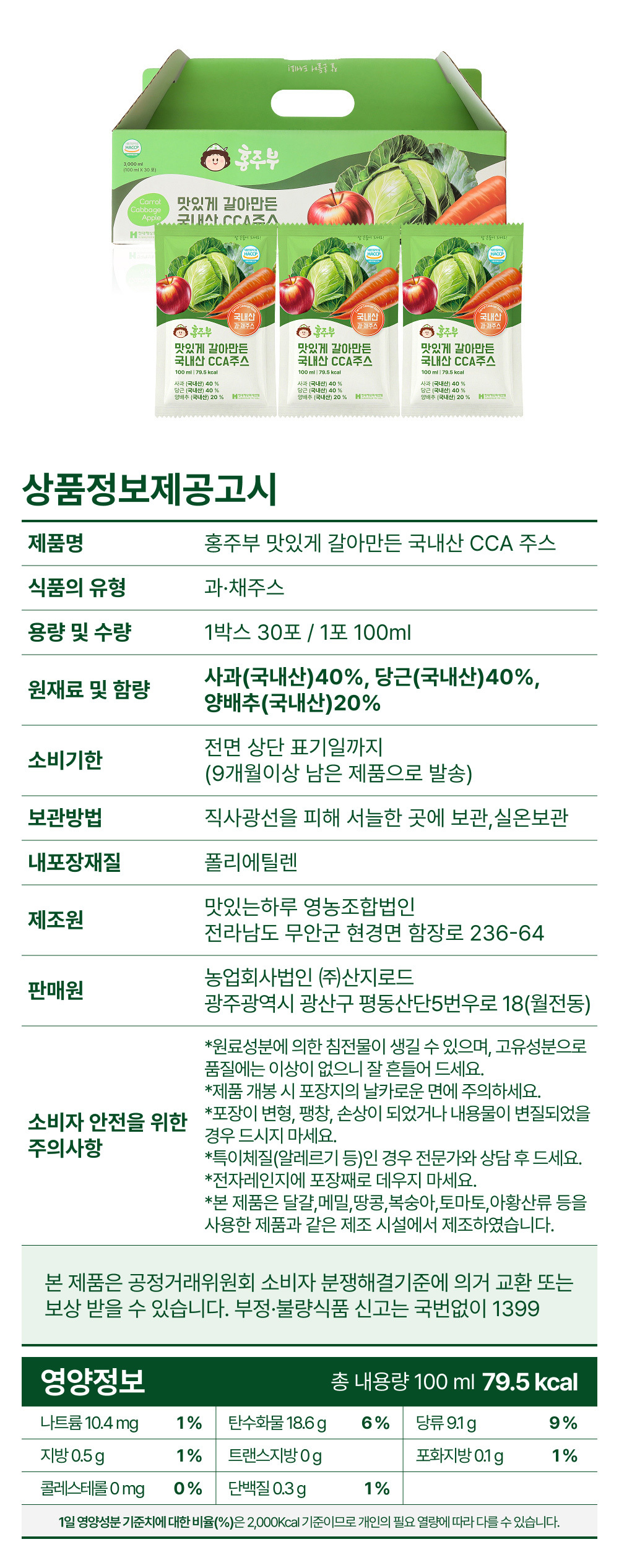 | 9. 소비자 안전을 위한 주의사항 (「식품 등의 표시ㆍ광고에 관한 법률 시행규칙」 제5조 및 [별표 2]에 따른 표시사항을 말함) | 상품 상세정보 참조 |