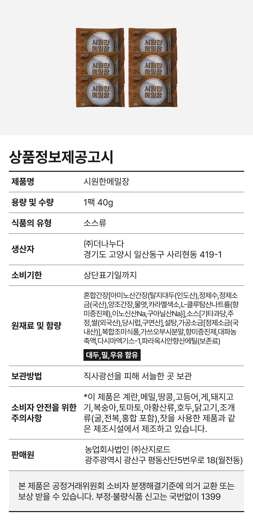 | 1-9. 소비자 안전을 위한 주의사항 (「식품 등의 표시ㆍ광고에 관한 법률 시행규칙」 제5조 및 [별표 2]에 따른 표시사항을 말함) | 상세정보참조 |