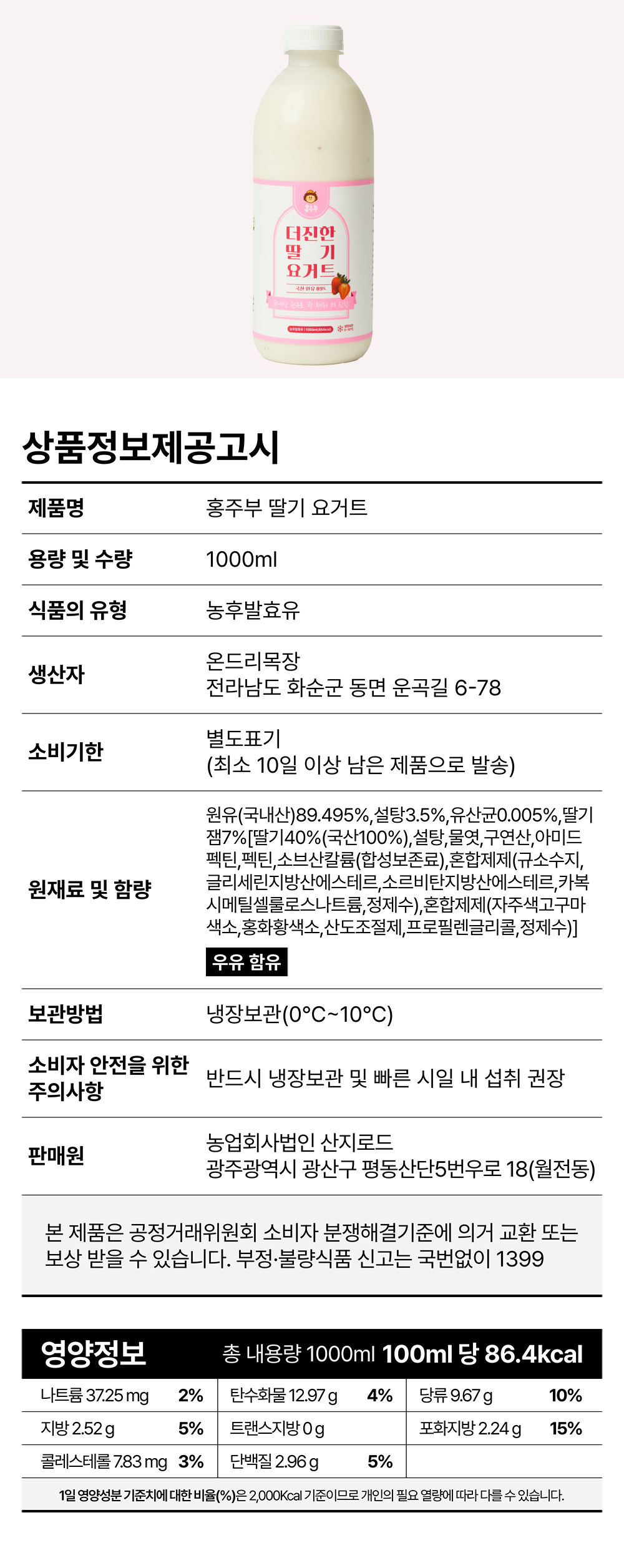 | 9. 소비자 안전을 위한 주의사항 (「식품 등의 표시ㆍ광고에 관한 법률 시행규칙」 제5조 및 [별표 2]에 따른 표시사항을 말함) | 상품 상세정보 참조 |